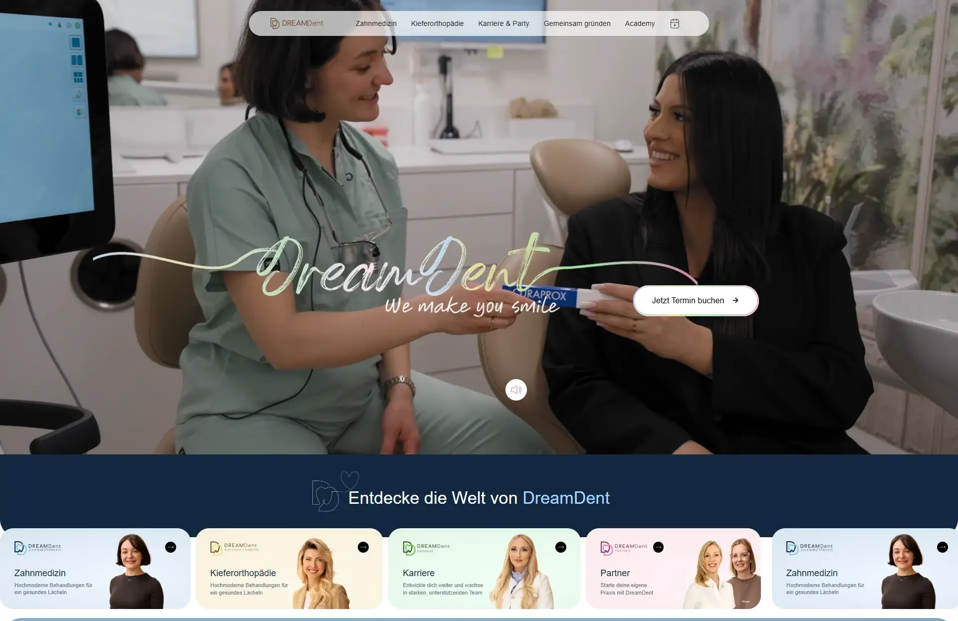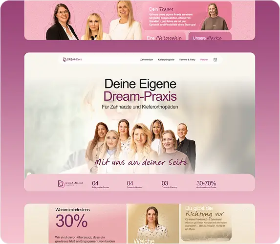 Dreamdent vereint erstklassige Zahnmedizin, moderne Kieferorthopädie, vielfältige Karriereperspektiven und starke Partnerschaften unter einem Dach. Um dieses ganzheitliche Konzept auch online klar und überzeugend zu kommunizieren, entwickelten wir eine moderne, nutzerfreundliche Website mit durchdachter Struktur, ansprechendem Design und gezielter SEO-Optimierung – für mehr Sichtbarkeit, Vertrauen und Wachstum.
