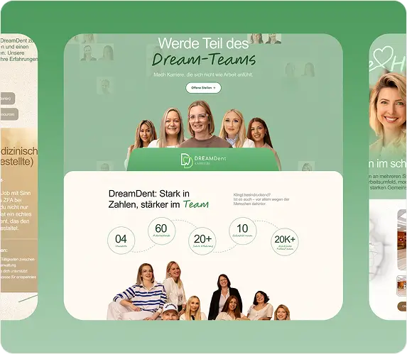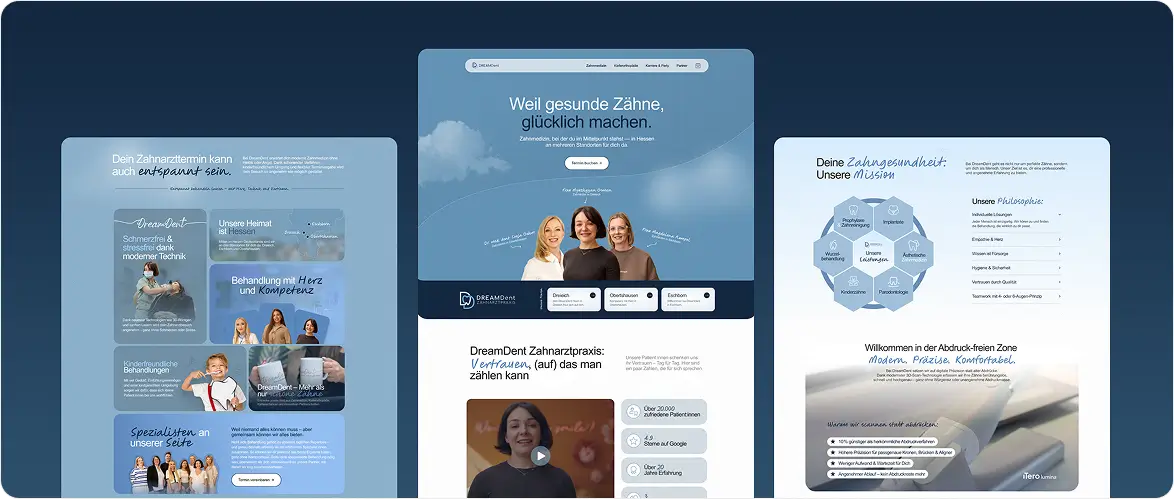 Das Projekt für Dreamdent stärkte die digitale Markenpräsenz spürbar. Gemeinsam entwickelten wir eine Website, die alle Bereiche – von Zahnmedizin bis Karriere – klar und ansprechend abbildet. Mit gezielter SEO konnten wir die Sichtbarkeit in Hessen deutlich steigern und qualifizierte Anfragen erhöhen. Die Zusammenarbeit war professionell, effizient und auf Augenhöhe.
